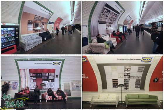 不僅在車(chē)廂里放沙發(fā),也在 站臺(tái)上面放,這樣就能讓人感覺(jué)是在臥室里等地鐵了。