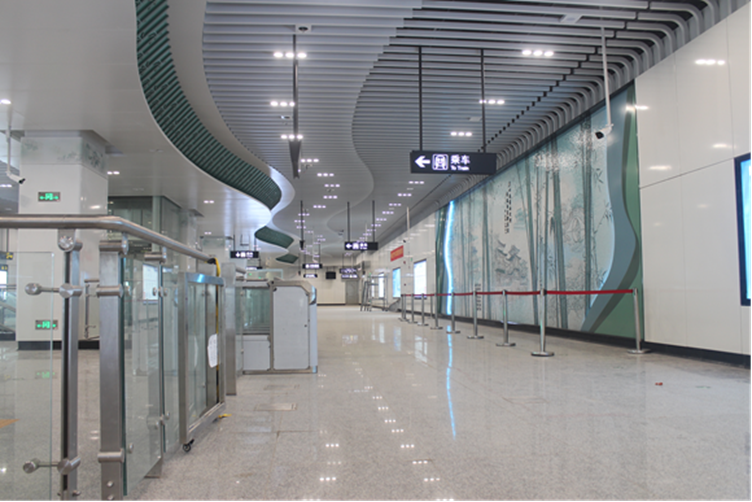 近日,南寧市軌道交通5號線一期工程獅山公園站公共區(qū)裝修概念主題全部完工,并通過驗收,標準著全線僅設(shè)計的兩個重點裝修站首個告捷。南寧市軌道交通車站公共區(qū)裝修的設(shè)計整體思路:一是以線路為基本設(shè)計單元,線網(wǎng)內(nèi)不同線路形成各自風格特色,與時俱進,展示時代特征。二是遵循“ 系統(tǒng)化、標準化、模數(shù)化、工業(yè)化” 的設(shè)計理念。以建設(shè)為主導,系統(tǒng)化、標準化、模數(shù)化設(shè)計,工業(yè)化裝配,節(jié)省工期和成本。三是采用“共性區(qū)+個性區(qū)”空間模式。采用“共性區(qū)+個性區(qū)”的模式,區(qū)分個性與共性區(qū)域,具體造型手法結(jié)合線路設(shè)計概念演化。四是色彩規(guī)劃一線一色。一條線路一個線路標志色,全線標準站采用統(tǒng)一主題色(系)。五是結(jié)合文化,提煉地域元素。提煉南寧本地最有代表的文化符合和景觀,運用到車站裝修設(shè)計中去,用現(xiàn)代化的語言演繹傳統(tǒng)元素。根據(jù)線路定位,南寧市軌道交通5號線一期工程為生態(tài)宜居線,裝修方案以“綠城水韻”為主題,以“邕水藍”為線路色,以“邕江之水”為文化元素;獅山公園站結(jié)合站點周邊文化特色進行了重點裝修設(shè)計,增加“竹影婆娑”文化副主題設(shè)計。